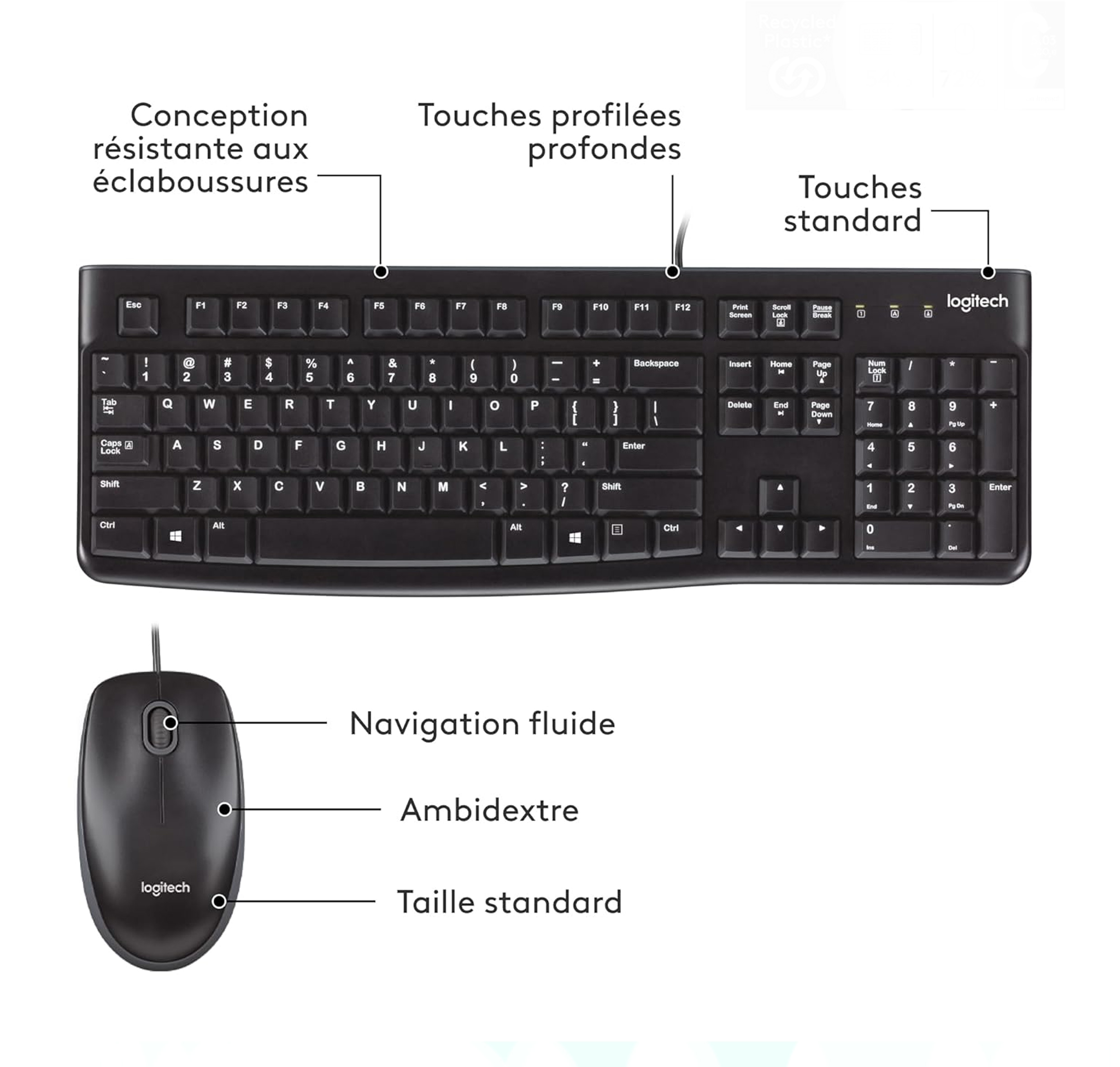 quantité de Combo Clavier et Souris Filaire Logitech MK120 Original Azerty Noir