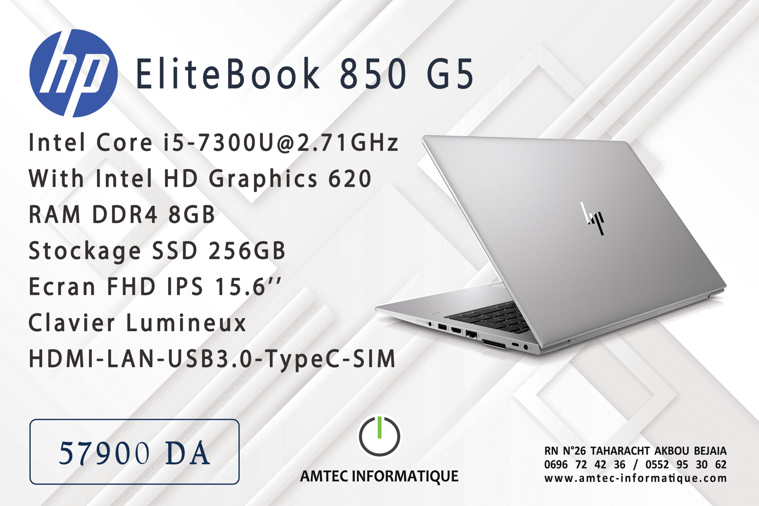 quantité de Laptop HP EliteBook 850 G5, Core i5-7th, RAM 8G, SSD 256G, 15.6"