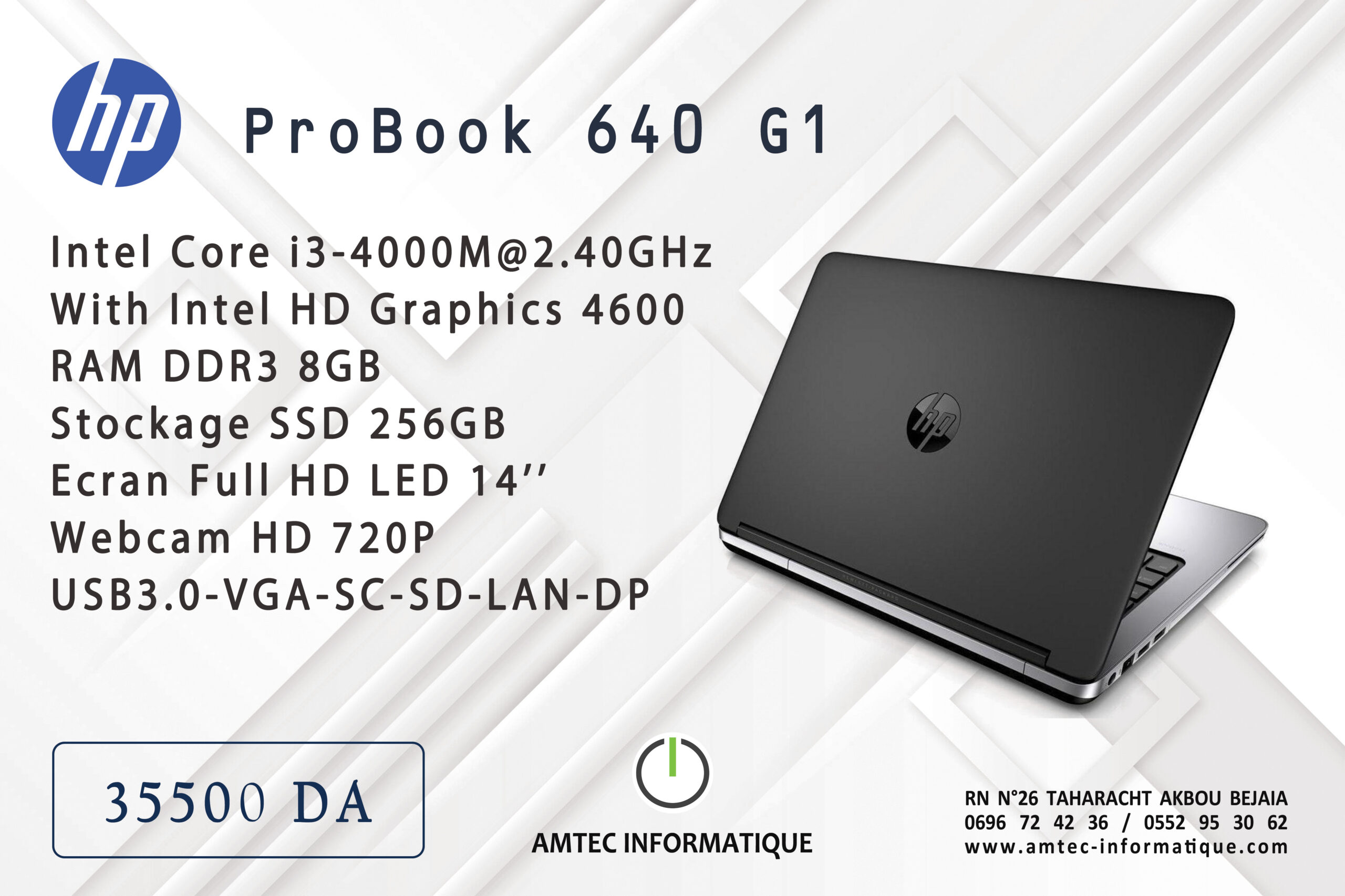 Laptop HP ProBook 640 G1, Core i5-4th, RAM 8G, SSD 256G, Ecran 14 »