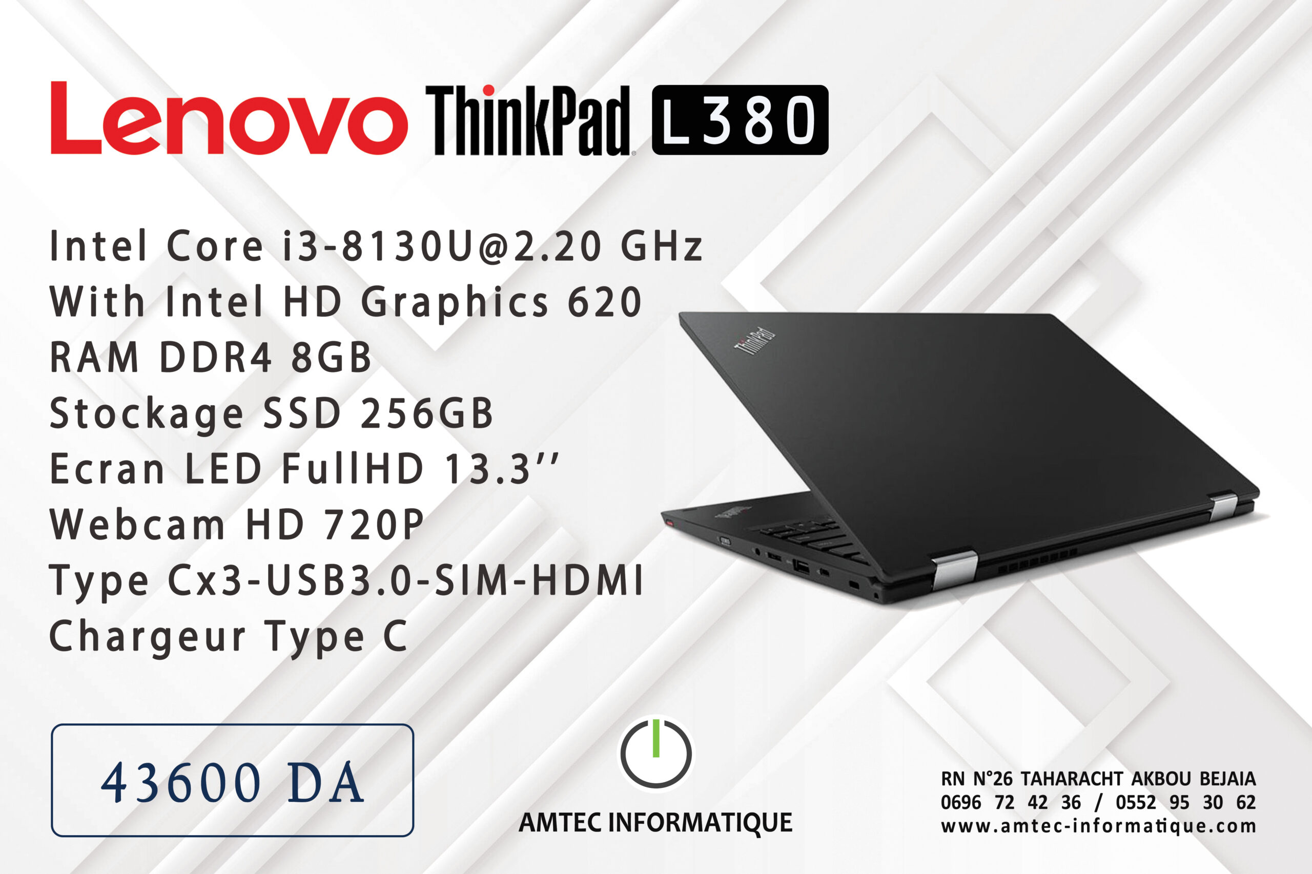 quantité de Laptop Lenovo ThinkPad L380, Core i3-8th, RAM 8G, SSD 256G, Ecran 13.3''